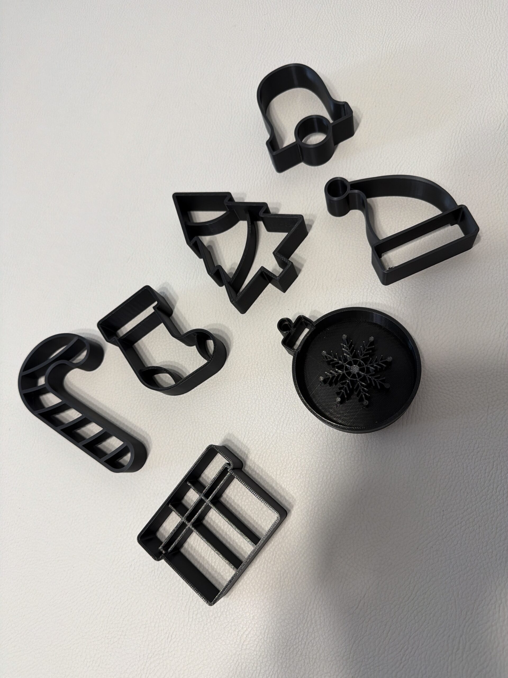 Die 7 verschiedenen Ausstecher sind präzise im 3D-Druckverfahren aus hochwertigem PLA gefertigt – robust, lebensmittelsicher und umweltfreundlich.