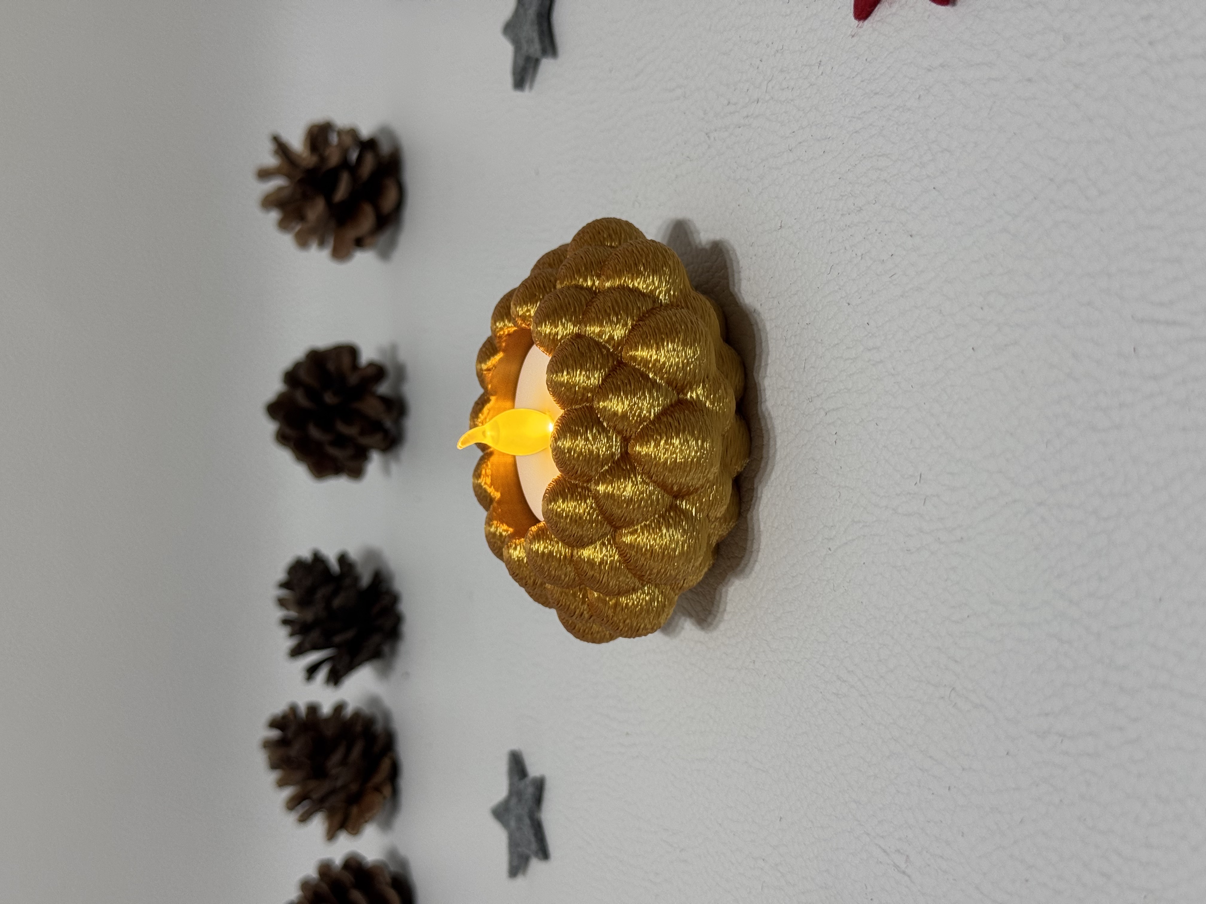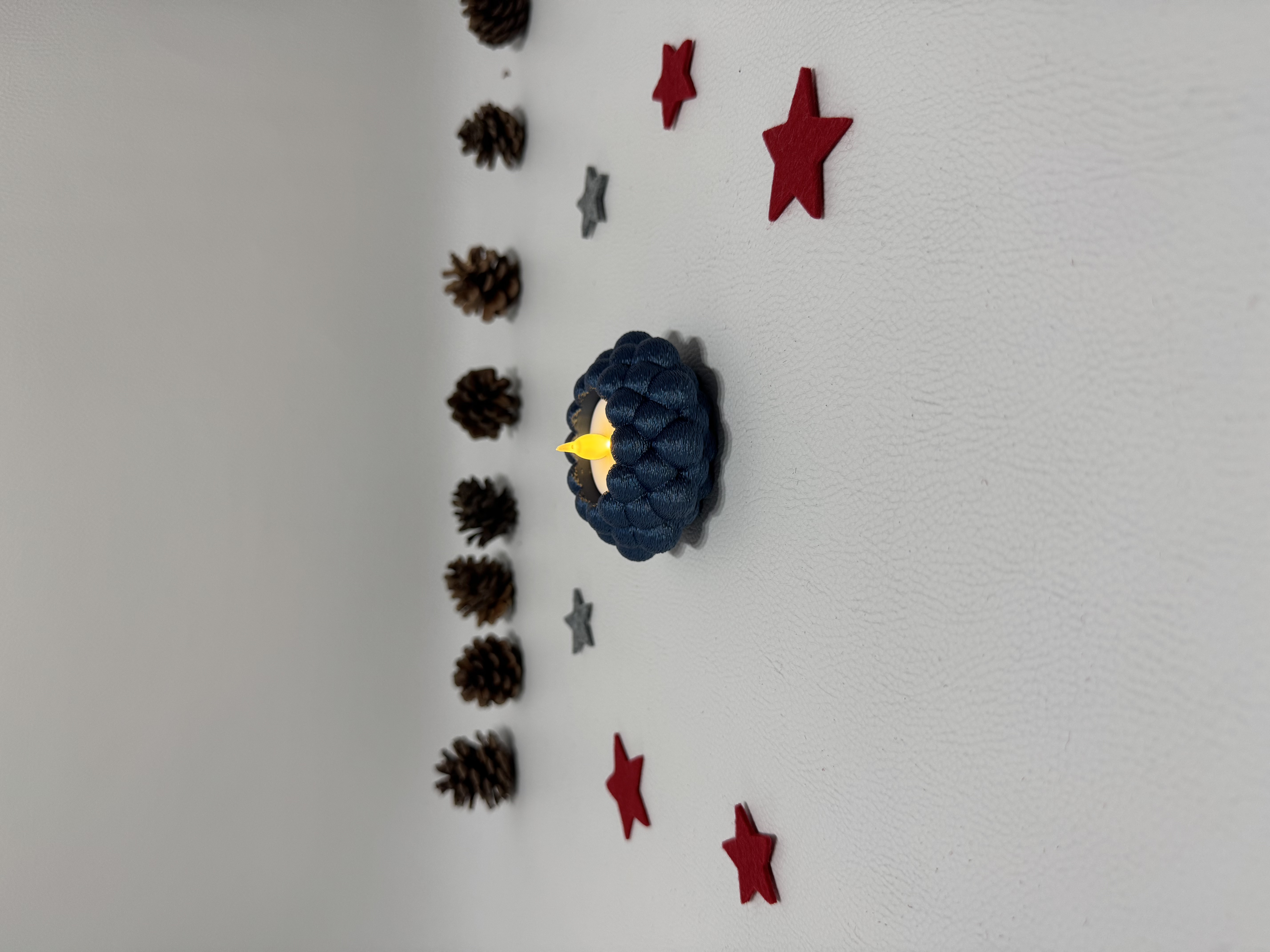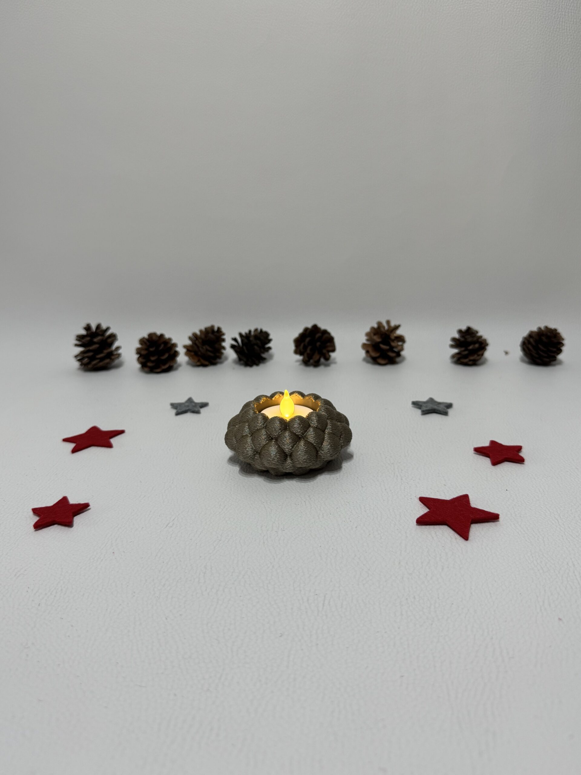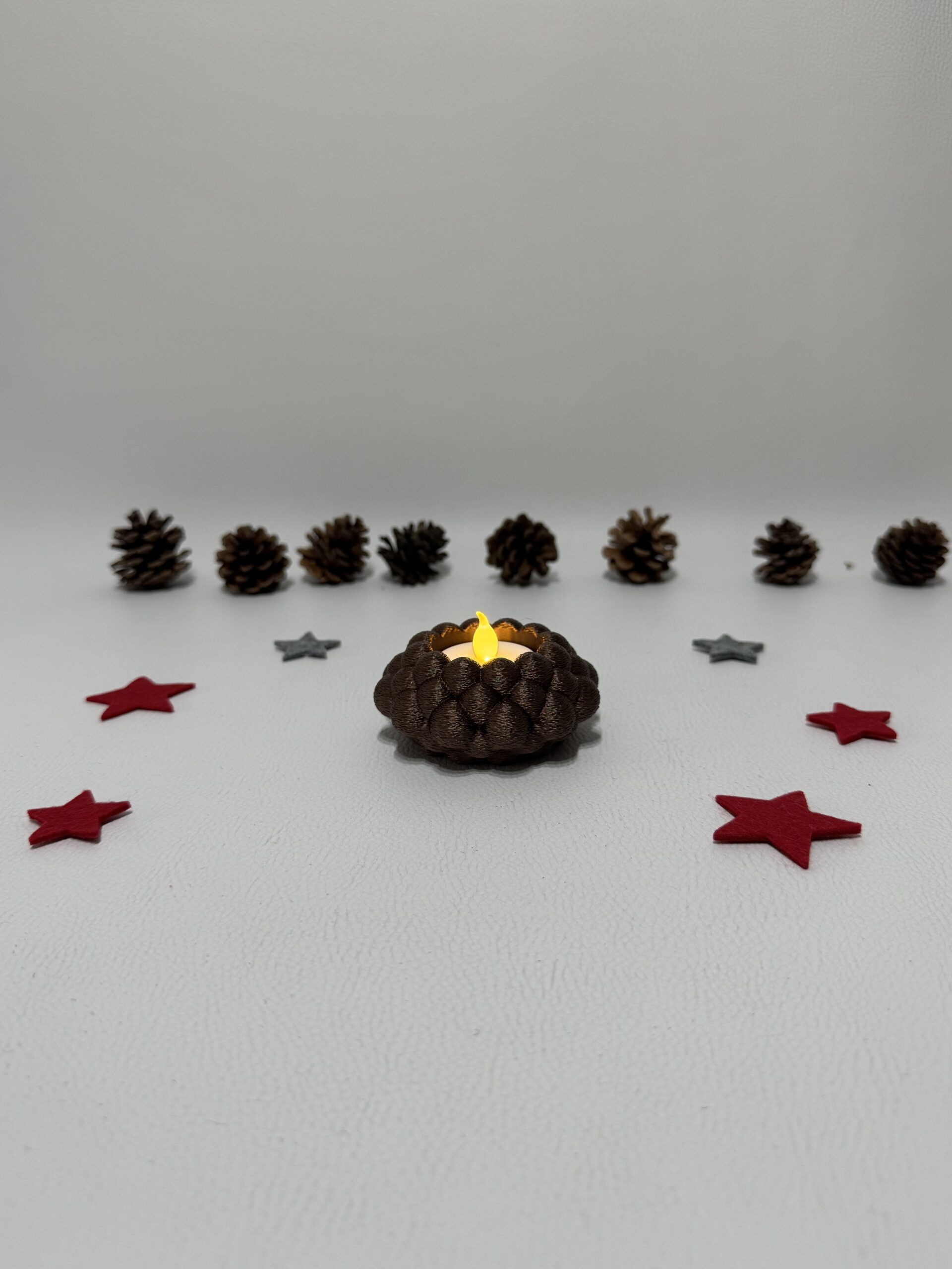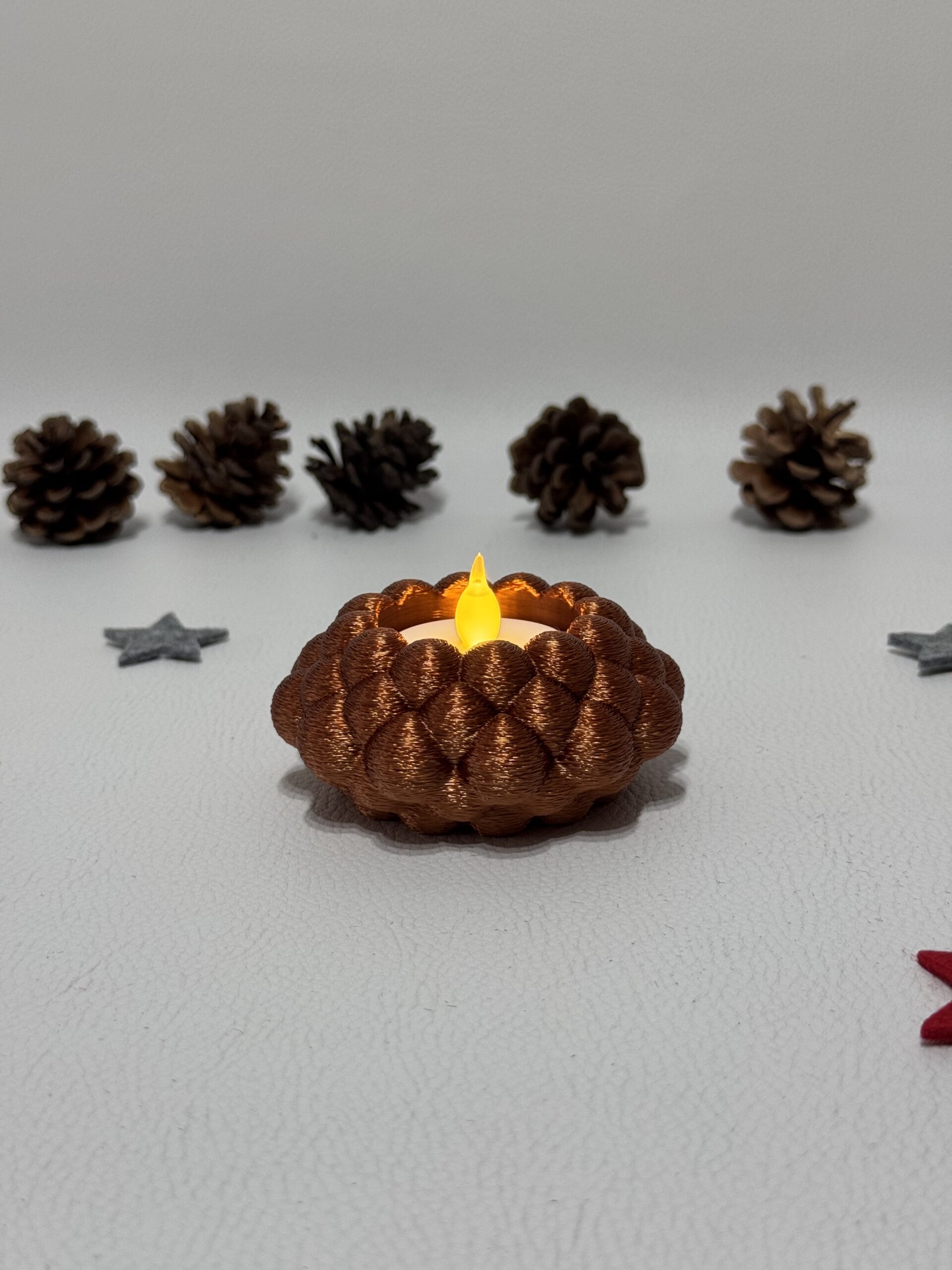 Bringe modernen Stil und warme Gemütlichkeit in dein Zuhause mit dem 3D-gedruckten Teelichthalter „Bubble Knot“.