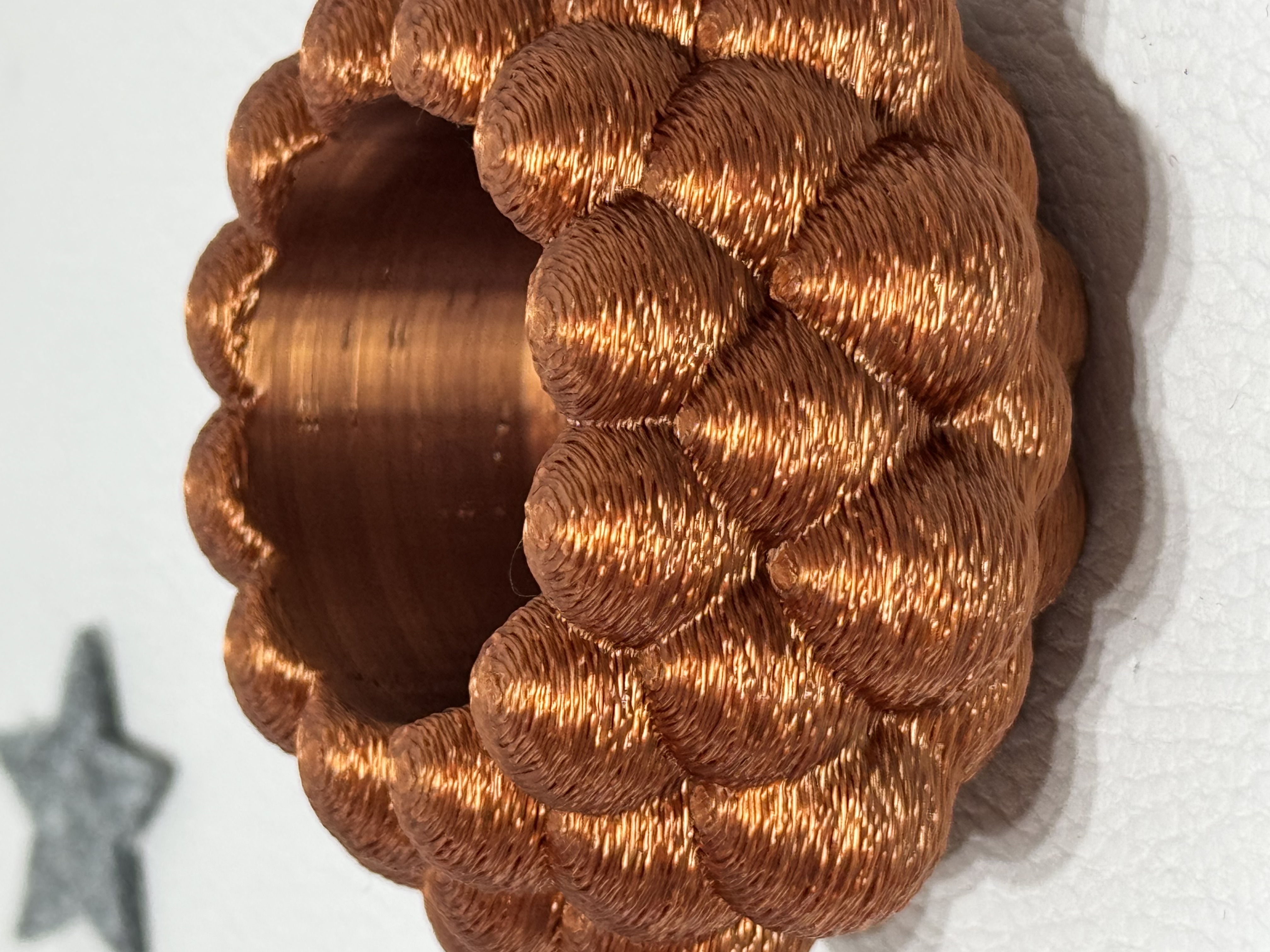 Dank der hochwertigen 3D-Druckfertigung entsteht eine feine, texturierte Oberfläche mit einem dezenten metallischen Schimmer – perfekt für ein stilvolles Ambiente.