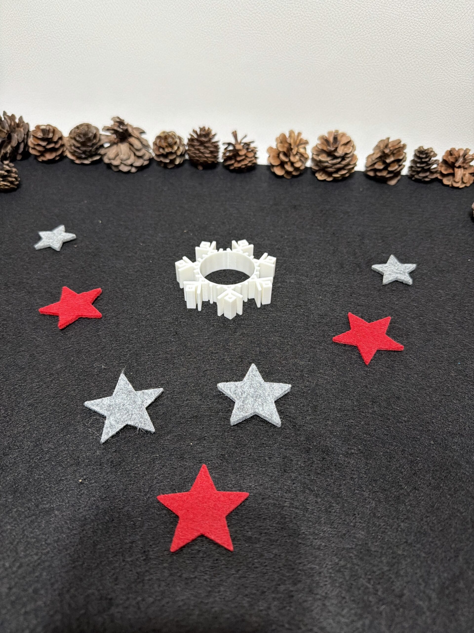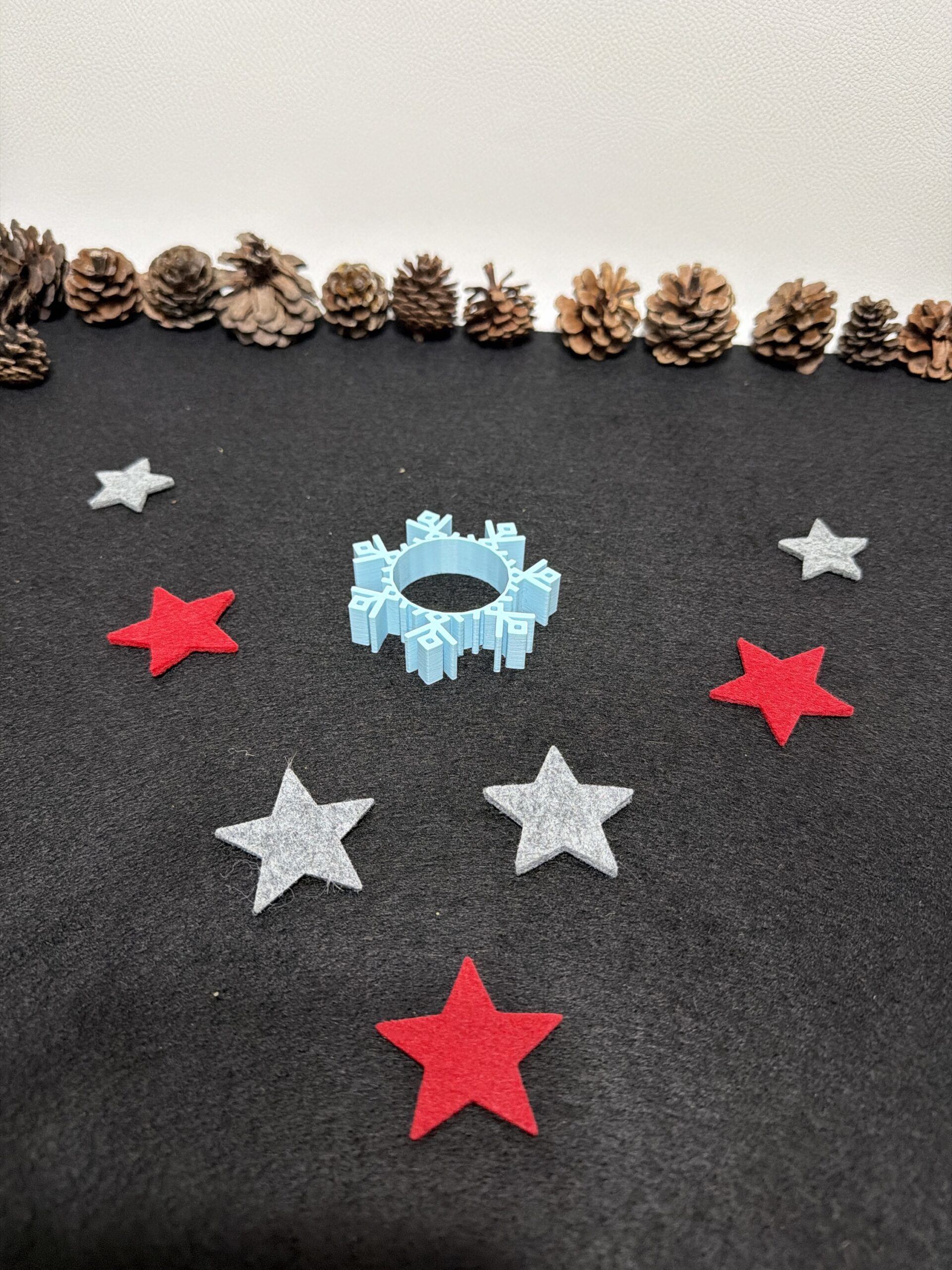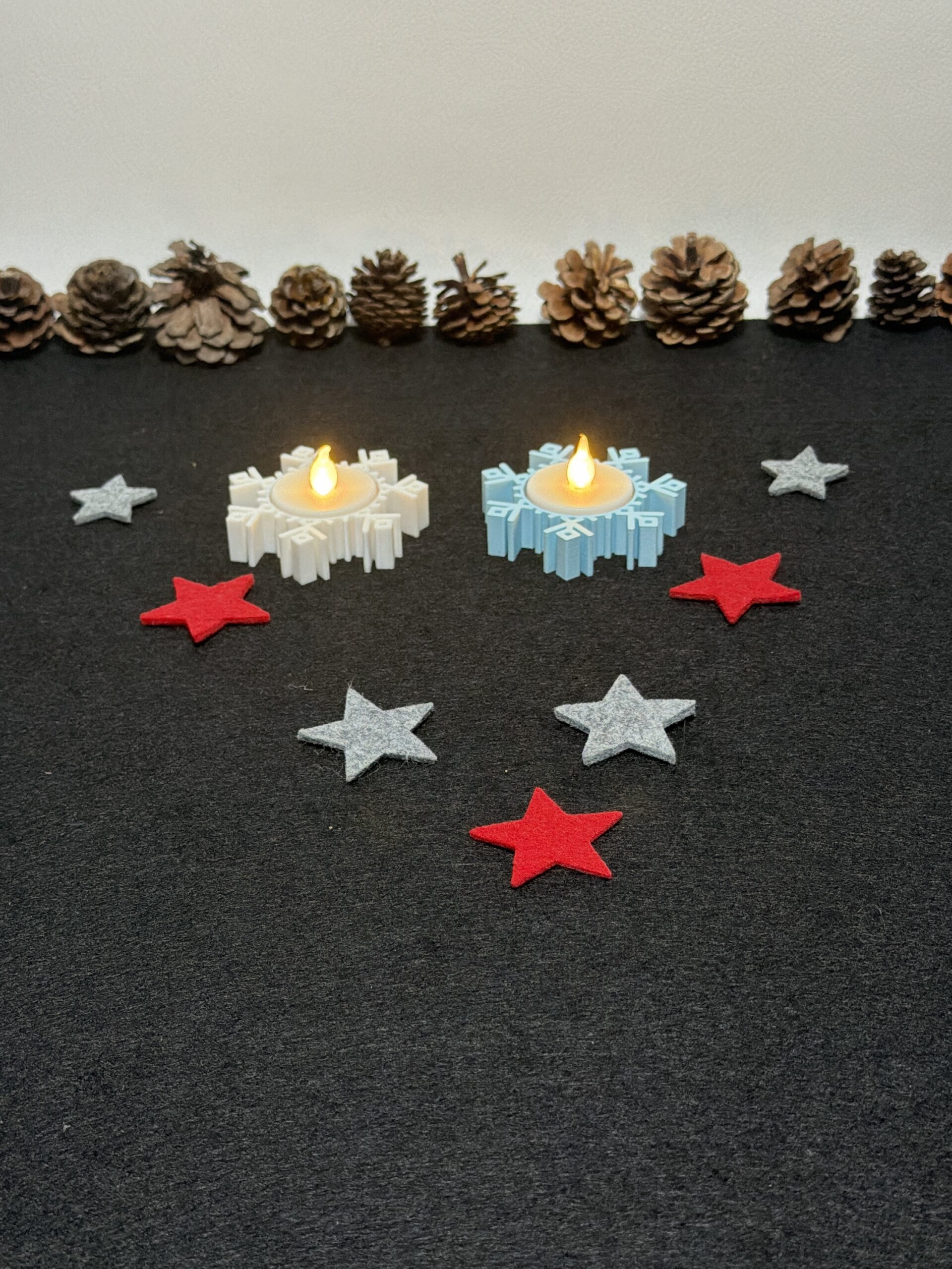 Gefertigt aus hochwertigem PLA im präzisen 3D-Druckverfahren, überzeugt Variante 2 durch ihre symmetrische Schneeflockenstruktur, die das Licht des Teelichts wunderschön reflektiert.